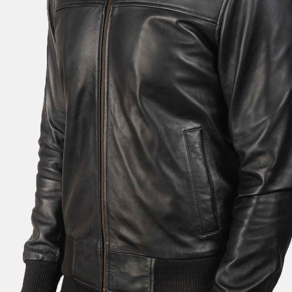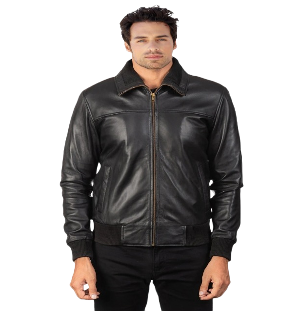Emilio Places - Rey, Black Leather Bomber Jacket Size Medium